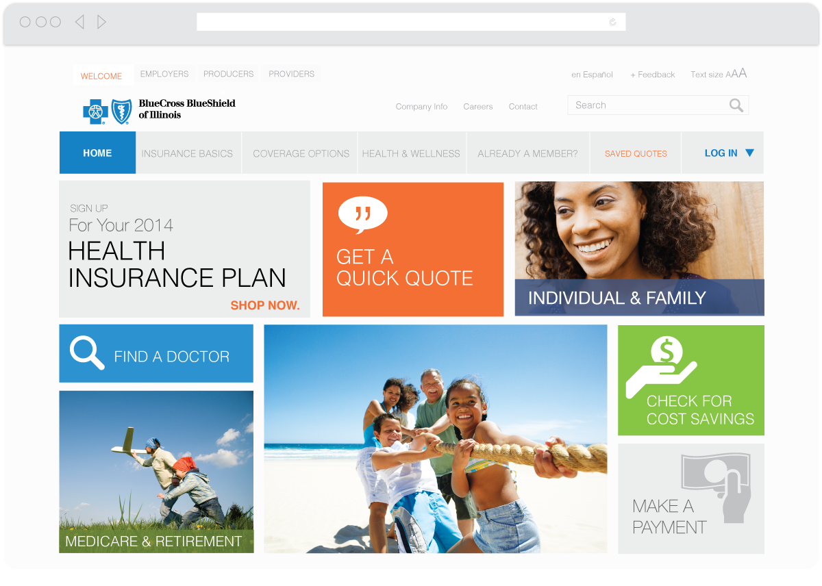 Design exploration of the Blue Cross Blue Shield public site. Looking at different ways to present the most common features used on the site.