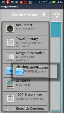 I collaborated on the design and creation of a drag and drop prototype for the multimedia team. The goal was to demonstrate the feasibility and desirability of allowing the use of a drag and drop paradigm for sharing content between phones.