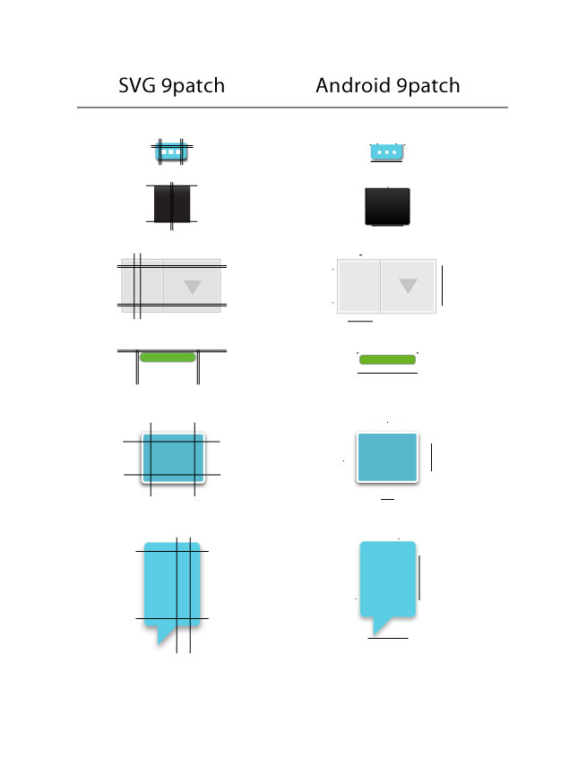 • Developed an SVG production process to best suit Android SVG support including 9-patch support.